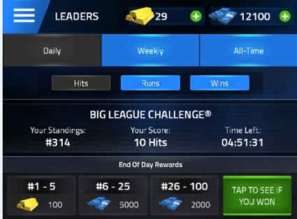 You could win game currency based on your performance. Remember this only happens if you visit the LEADERS section of the game.