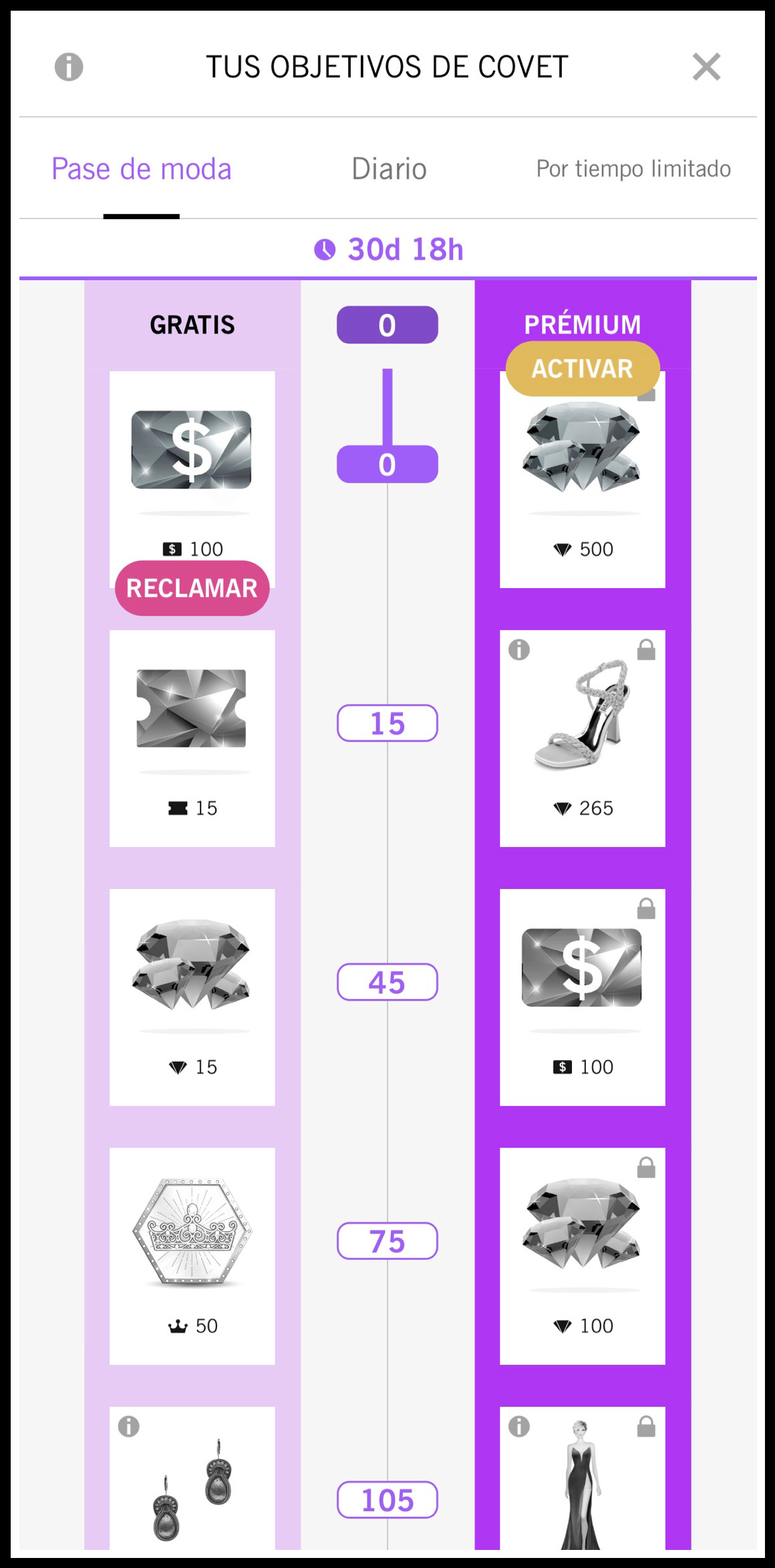 ¡Ten cuidado! No podrás transferir el progreso del Pase de moda de meses anteriores. Cuando se reinicie el mes del Pase de moda, se descartarán los premios que no hayas reclamado y no podrás recoger las recompensas del mes anterior.