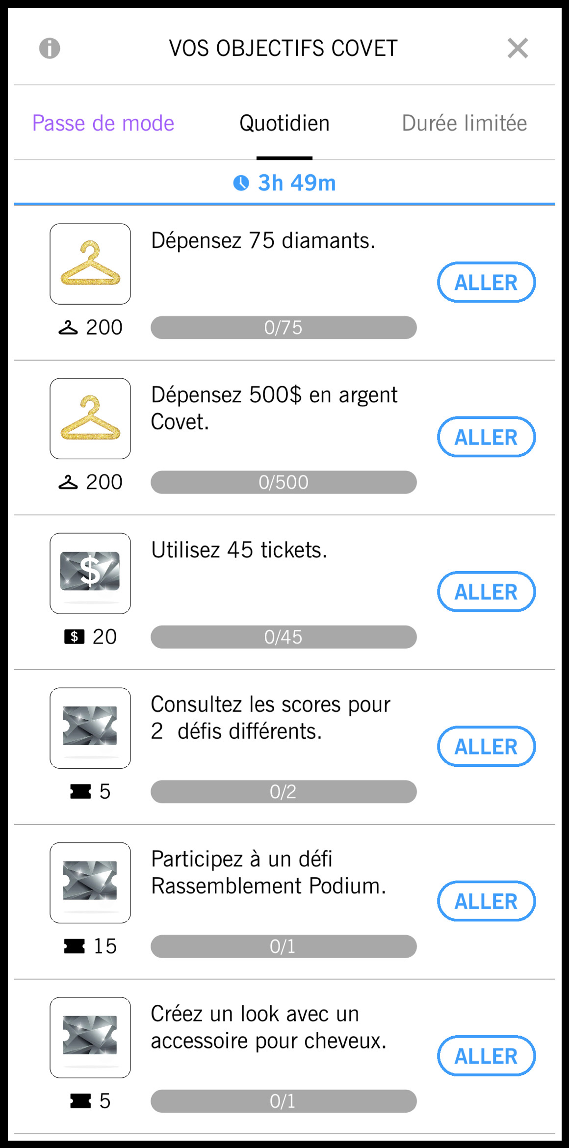 Au terme des 24 heures, les objectifs quotidiens se réinitialisent à nouveau, et tous les prix non récupérés sont perdus – les joueurs ne pourront pas obtenir les récompenses de la veille.