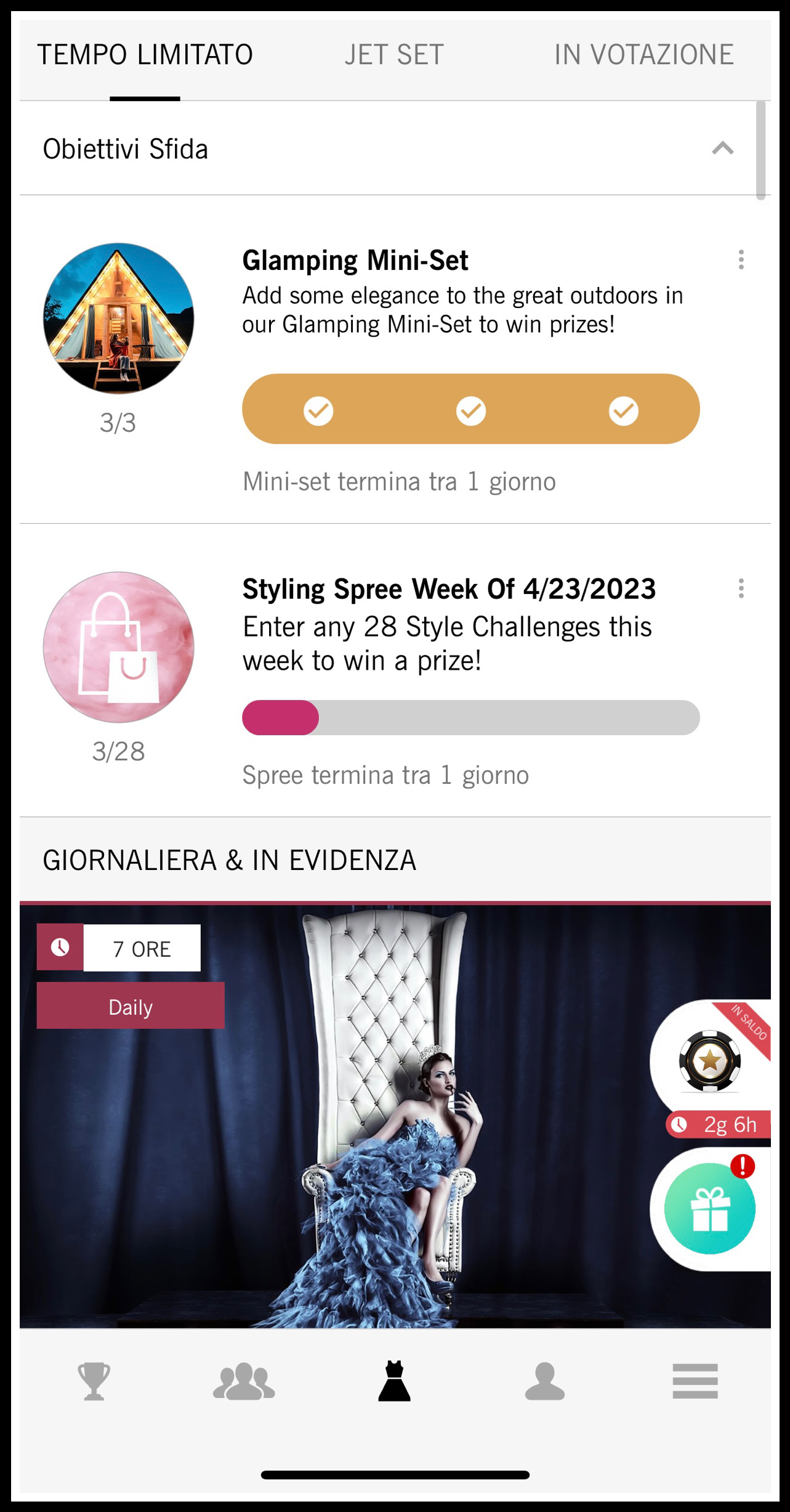 La funzionalità "I tuoi obiettivi di Covet" sarà disponibile nella pagina delle Sfide dopo che avrai completato le tue prime 5 Sfide tutorial!