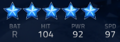 バッターのヒッティングの値は、ボールをバットに当てて塁に出る能力を表しています。