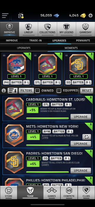 それぞれのモーメントブーストはあなたのラインナップを一部ブーストしてくれます。タグを見れば効果を受ける選手を確認できます。オプションには、チーム、ポジション、利き手が含まれます。