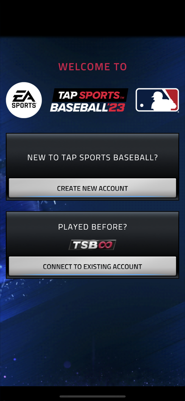「在 EA Sports Tap Sports Baseball 中,連線到先前的帳號比以往更加容易。在初次載入(以及一些通知和生日問題)後,您會看到一個選擇:剛加入 Tap Sports Baseball 或之前玩過。