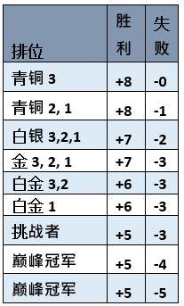 例如:当你处在青铜I排位并赢得比赛时,你将得到8个积分。如果输掉比赛,则失去1个积分。